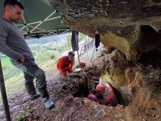 Orain pare bat aste joan ginen, EHUko ikertzaileak diren Asier Gomez-Olivencia, proiektuaren zuzendaria, Martin Arriolabengoa, geologia arduraduna eta Antxietako kideak logistika ardurarekin, BAIOko estratigrafiaren ikerketari hasiera ematera.